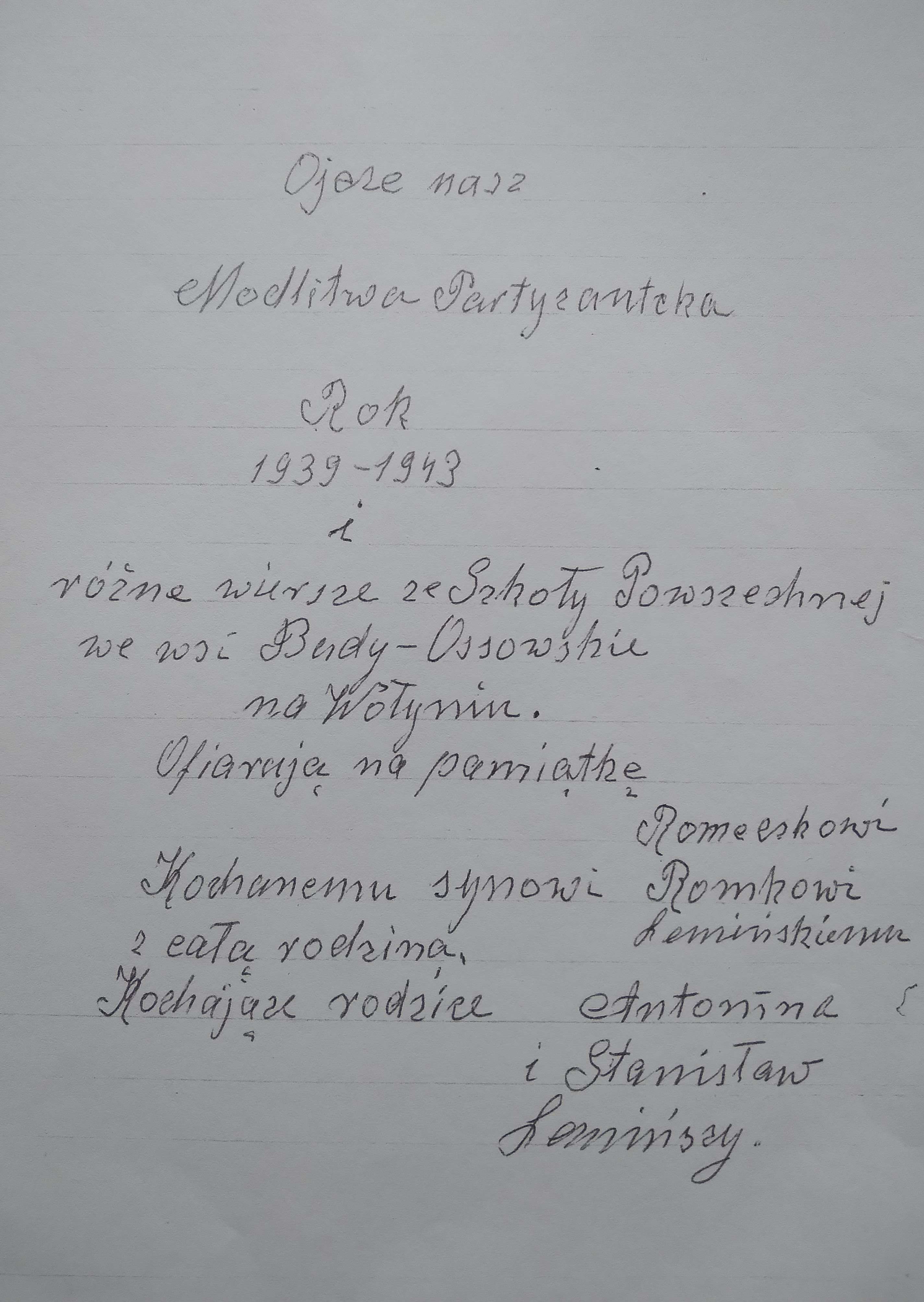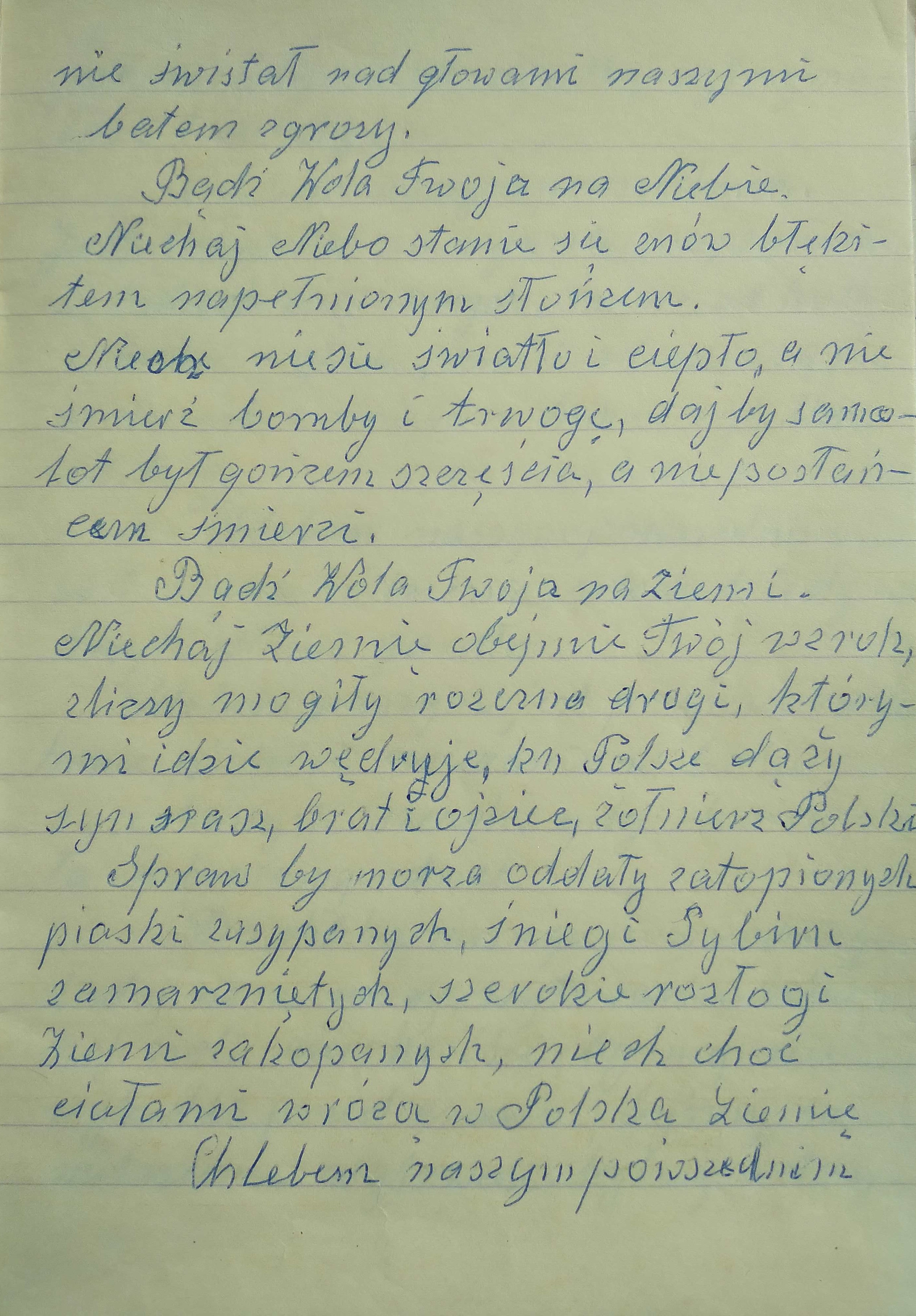 Bądź wola twoja na ziemi, niech ziemia obejmie Twój wzrok a zliczy mogiły, drogi, którymi idzie, wędruje ku Tobie, dąży syn nasz, brat, ojciec żołnierz Polski.