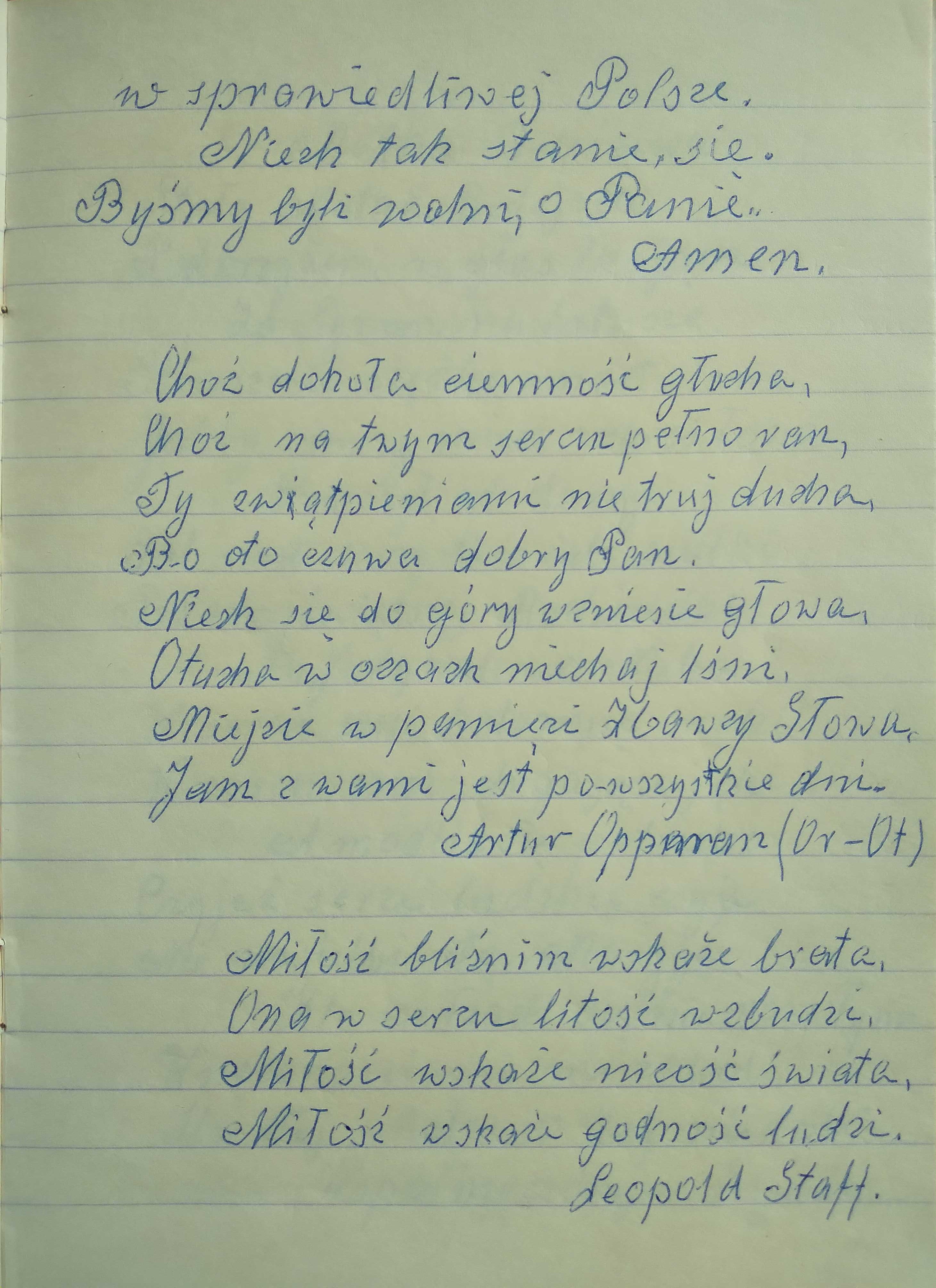 by leśne doły przestały się napełniać trupami, by szatan nieuleśniony w człowieku nie świtał nad głowami naszymi batem zgrozy.